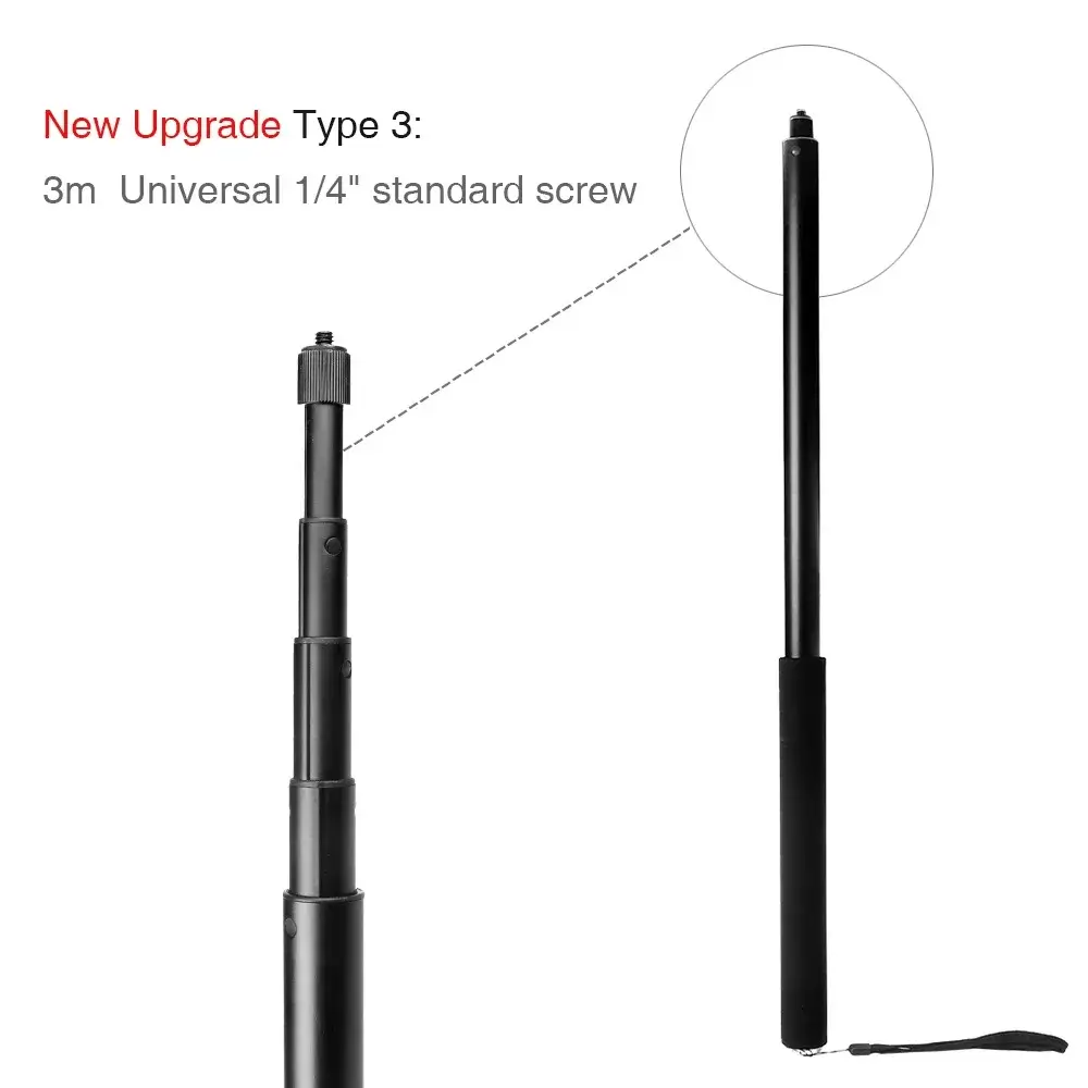 3 Meters Long Invisible Selfie Stick Monopod Pole for Gimbals,Insta360 One X2/X/R, DJI OSMO Action,Go Pro Max/Fusion, Hero 12/11/10/9/8,SJCAM & All Action Cameras, 360 Accessories