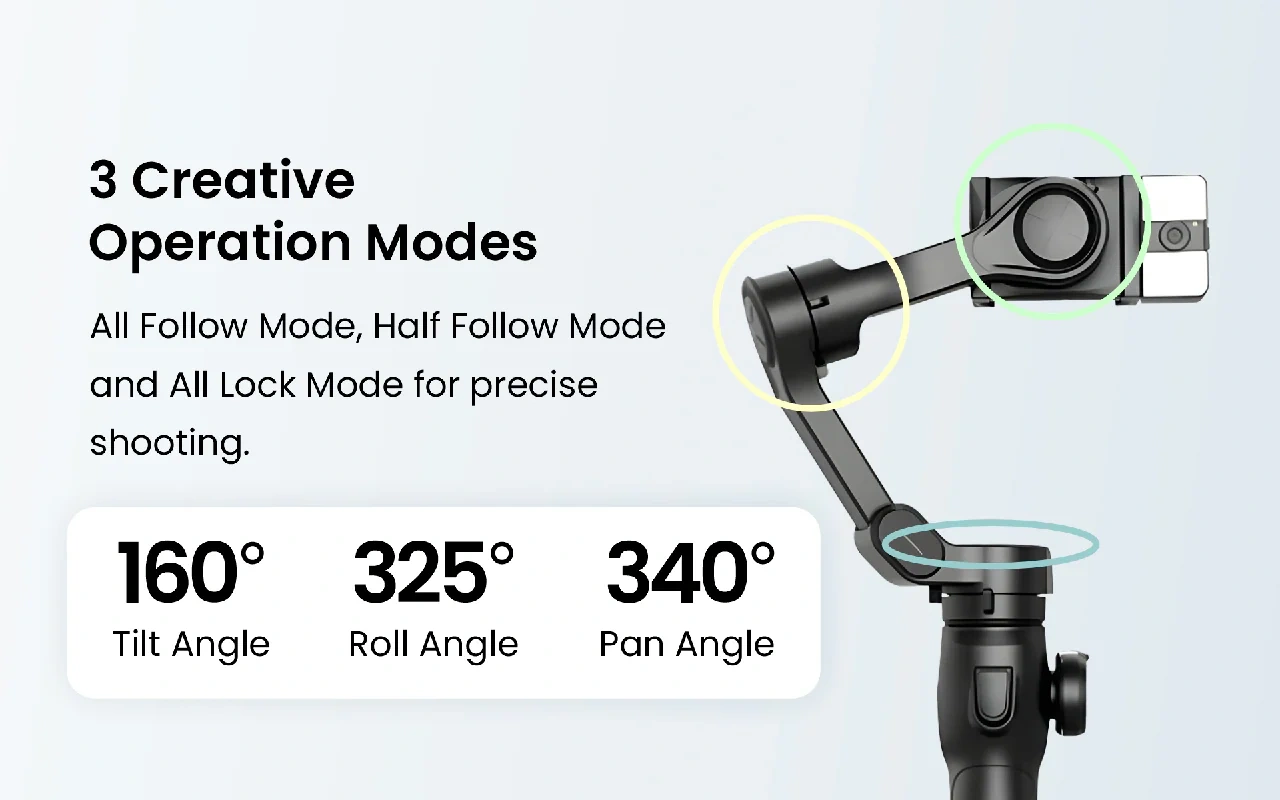 3 Creative Operation Modes All follow mode, Half Follow Mode and All Lock Mode for precise shooting.