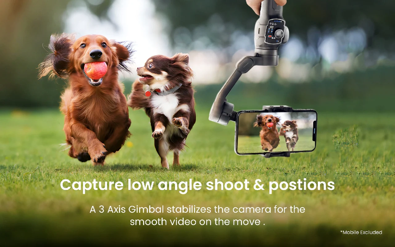 Support operation while charging. Make Your Own Smooth & Professional Videos with Ease A 3-Axis Gimbal stabilizes the camera for smooth video on the move.