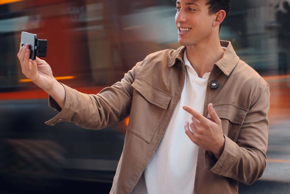 The DJI Mic 3 system supports dual-band wireless frequency hopping between 2.4 and 5.8 GHz signals from up to 1312′ away. Bluetooth 5.4 technology is also integrated into the system for connectivity with your mobile device. The transmitter unit can directly connect to DJI Osmo 360, Osmo Action 5 Pro, Osmo Action 4, or Osmo Action 3 cameras on its own.