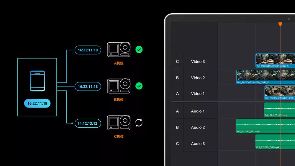 Built-in timecode in the Action 4 allows you to easily synchronize footage in multicamera shooting scenarios.