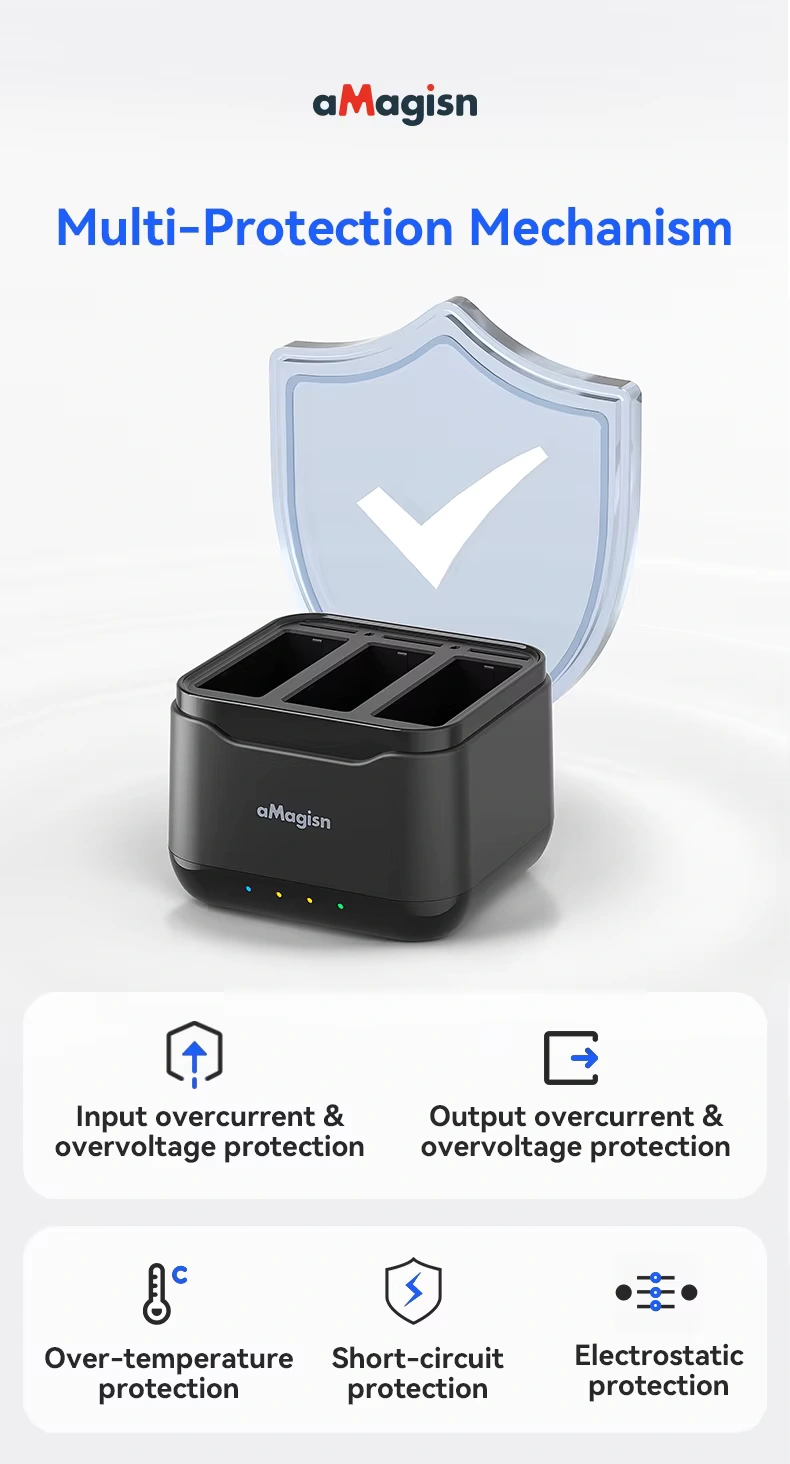 Built-in safety mechanisms ensure reliable and secure charging process for your valuable camera batteries.