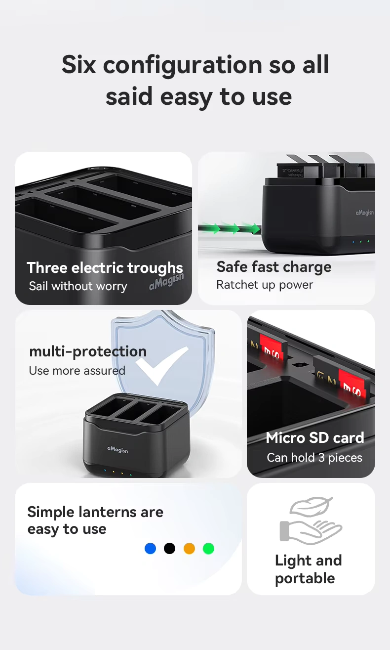 The charging hub can also be used as a battery and micro SD card storage box that can hold 3 cards at the same time.