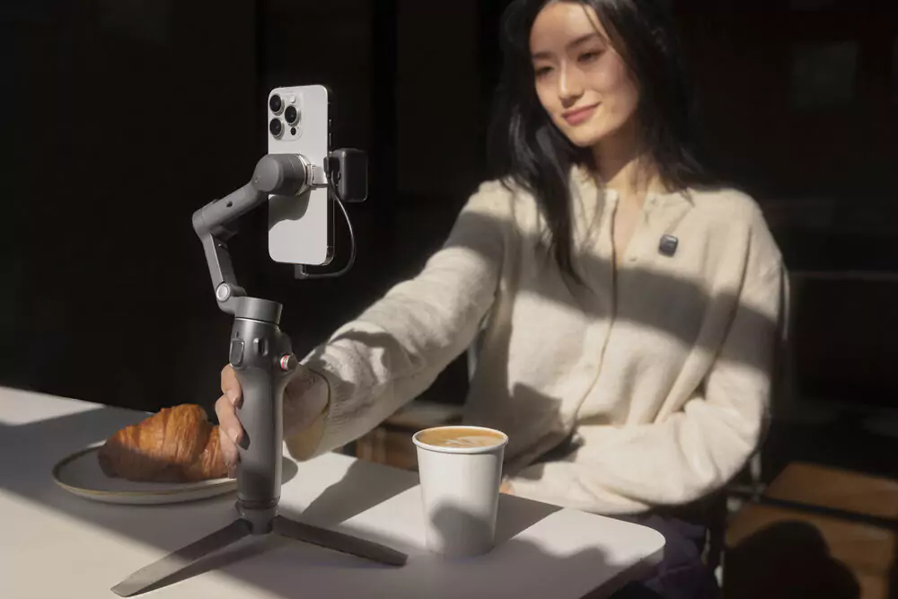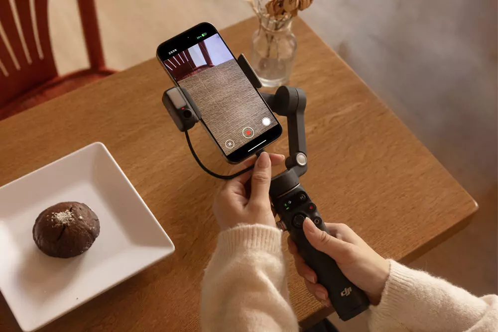 The Multifunctional Module adds tracking in your smartphone’s native camera app or third-party camera apps without requiring the Mimo app. Attaching the module also unlocks gesture control for hands-free adjustments. An integrated fill light on the module can enhance your low-light shooting. Bluetooth built into the module can connect up to two DJI Mic Mini transmitters to the gimbal without requiring a receiver unit.
