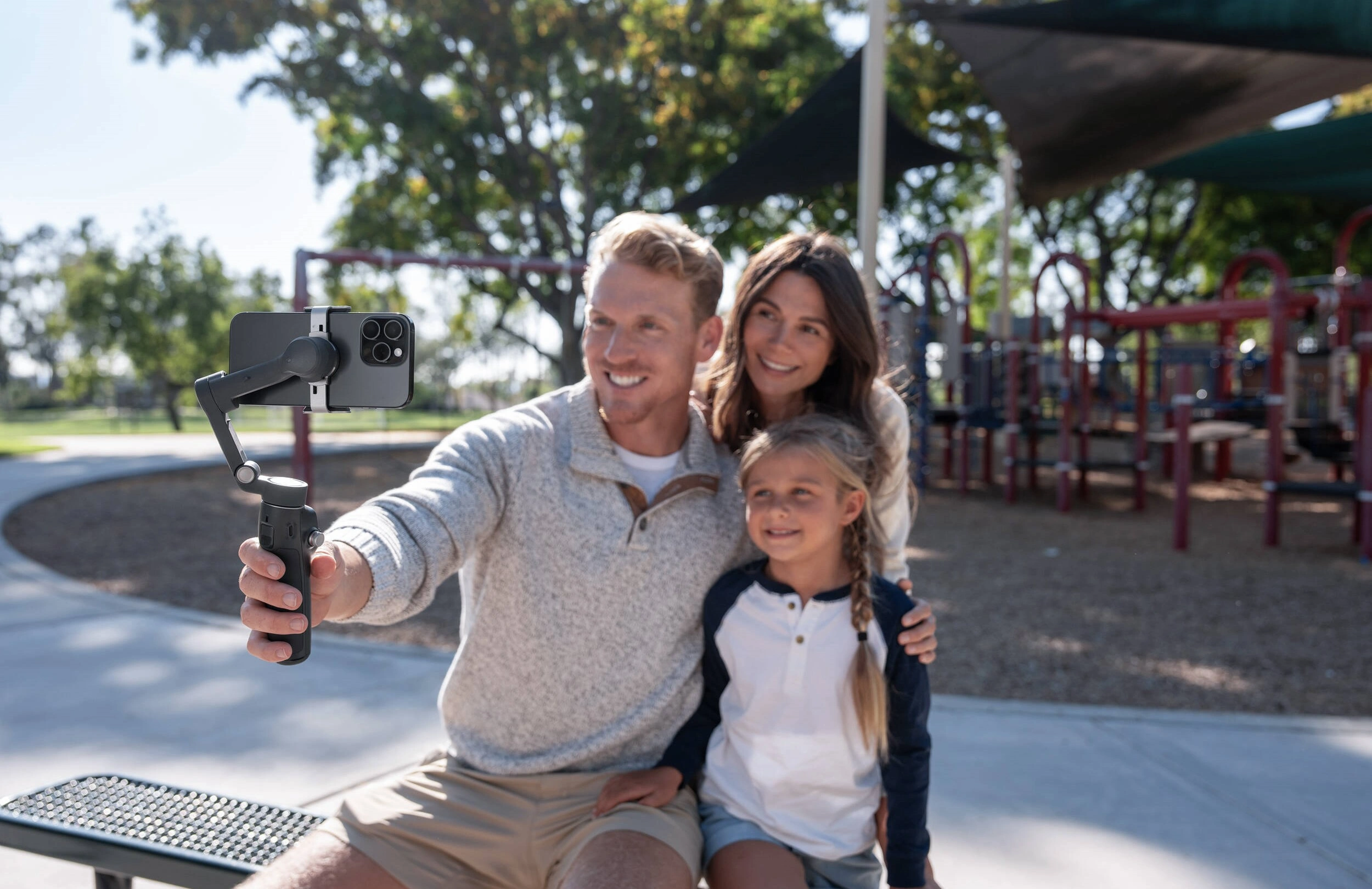 Smart Capture detects multiple subjects and allows you to effortlessly switch by tapping on your phone’s screen. Smooth tracking pinpoints your preferred subject, whether a person or family pet, and maintains continuous tracking regardless of movement or obstruction. Embedded stabilization technology creates shots free of shaking or distortion due to your terrain.