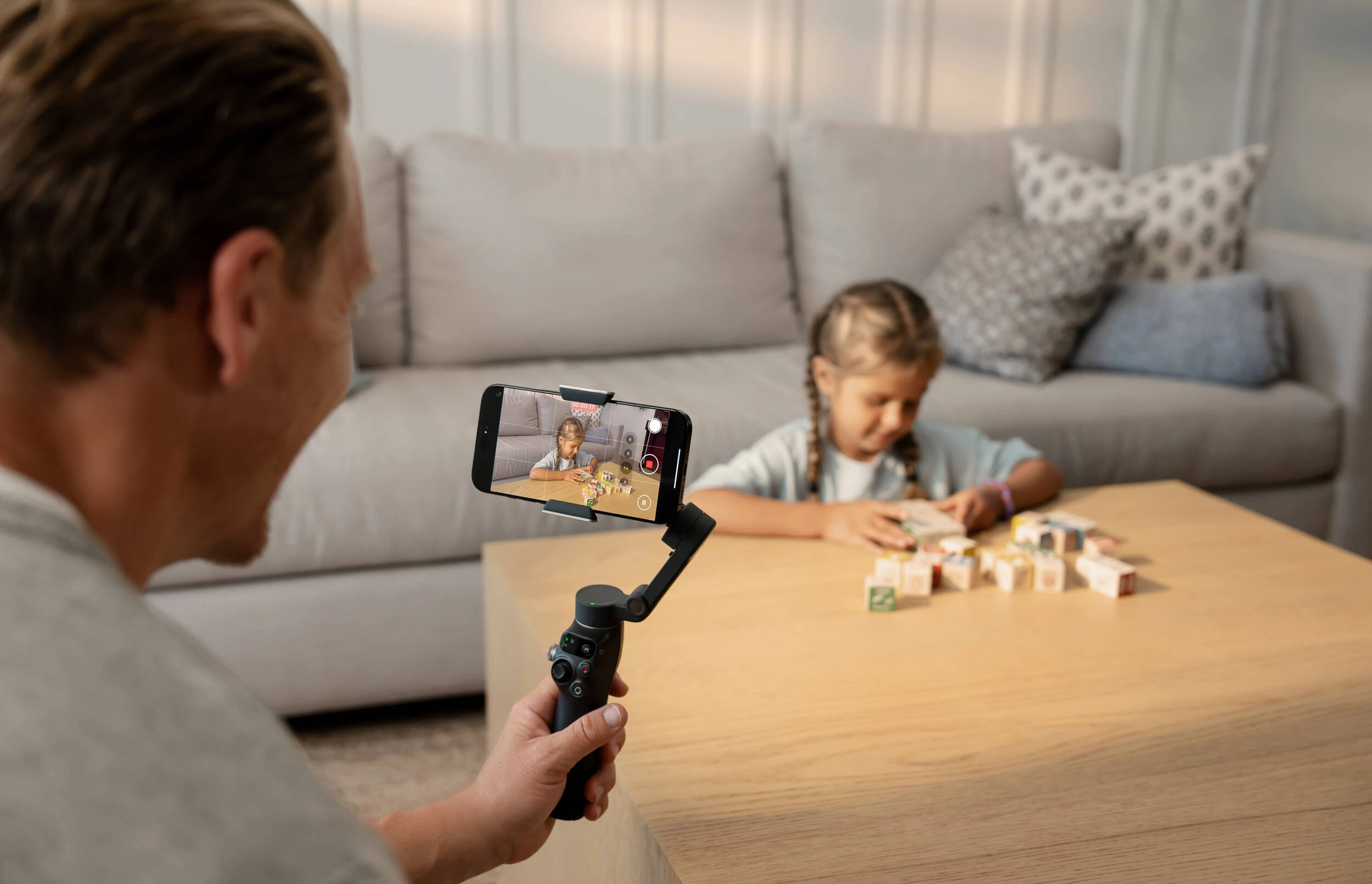 The Osmo Mobile 8 features improved stability over longer distances with the updated ActiveTrack 7.0, which can automatically track body shapes to track human or pet subjects without needing to make a manual selection. Track subjects even after they leave the frame using automatic zooming and gimbal movements for continuous filming.