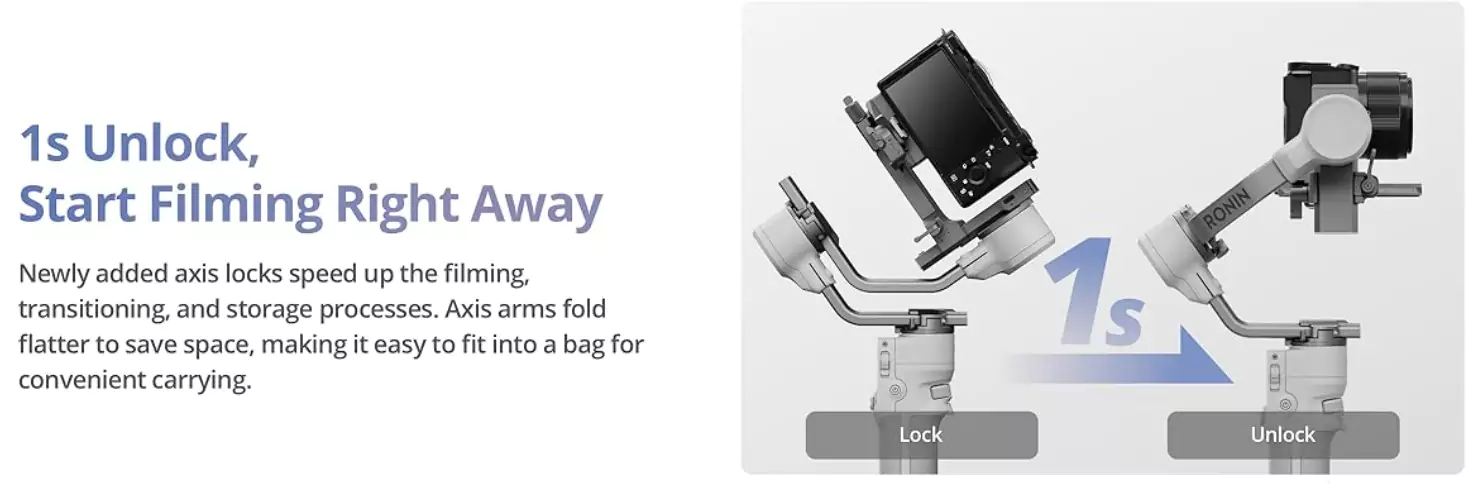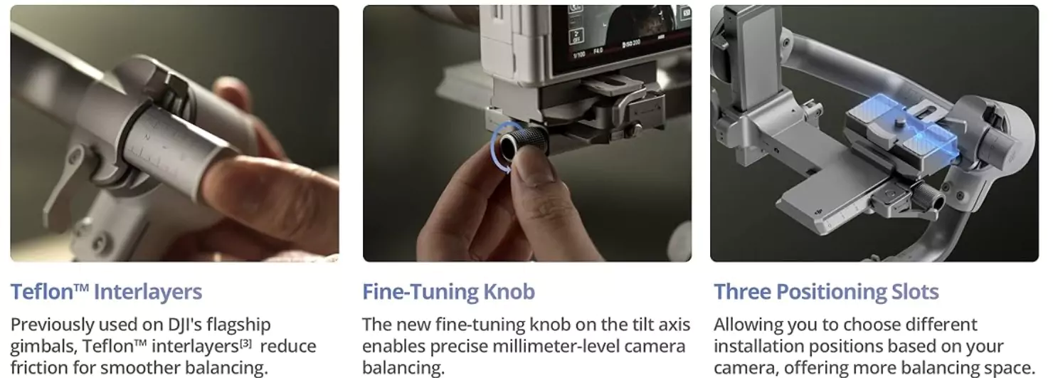 The dual-layer quick release plates make it easy to mount a camera onto the RS 4 Mini and eliminate the need to rebalance the gimbal after swapping out a new battery or memory card.