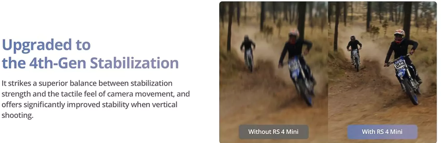 Custom-designed for mirrorless cameras, the DJI RS 4 Mini Handheld Gimbal Stabilizer is a lightweight single-handed gimbal stabilizer that supports a payload of up to 4.4 lb. This single-grip gimbal uses the DJI RS stabilization algorithm for enhanced performance. Weighing just 2 lb, it can capture smooth video for up to 13 hours thanks to the built-in 3100mAh battery and is supported by the detachable extended grip/tripod.