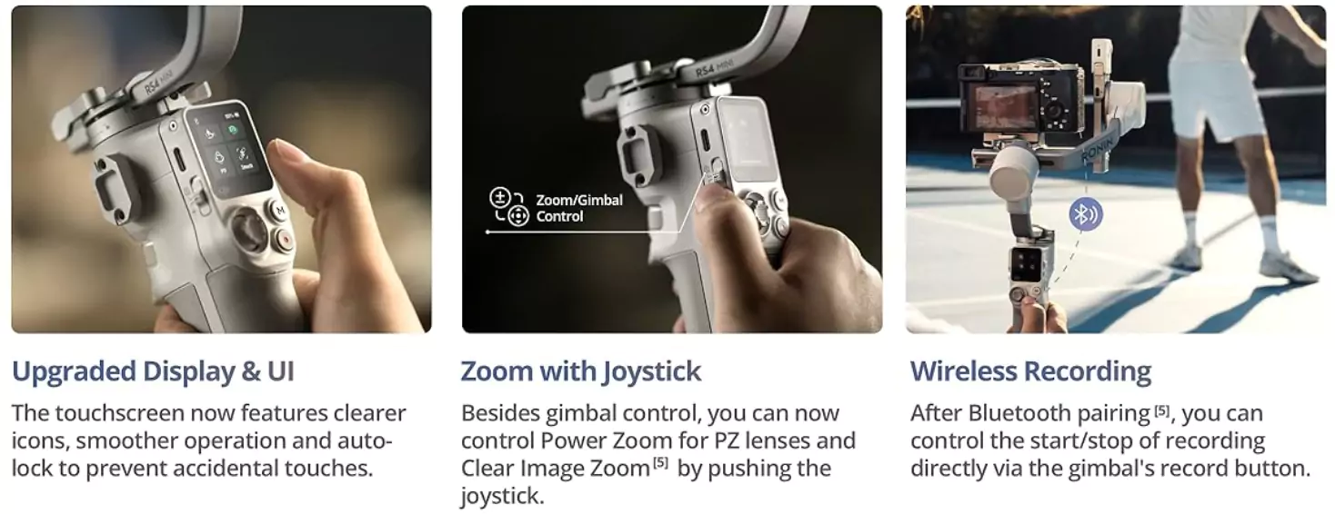 - Access wireless control for select cameras using Bluetooth and the Ronin app.