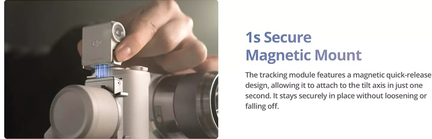 - The RS Intelligent Tracking Module mounts onto a pogo pin mount on the gimbal to enable tracking and gesture control.