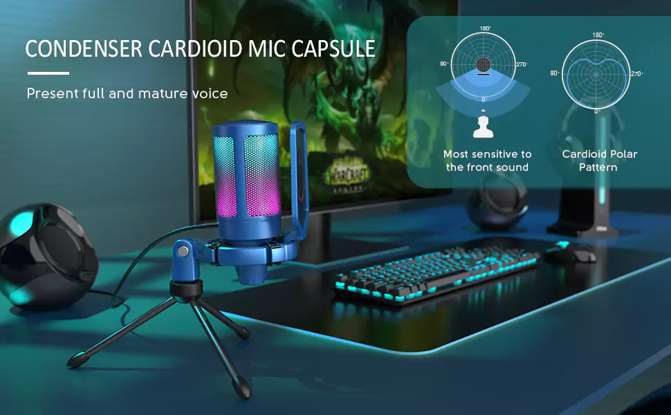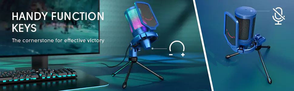 Gradient RGB & Quick Mute – With bicolored lighting, RGB alter seven color modes by itself in a gradient way. It adds carnival atmosphere with light-up computer setups, putting you in the fierce game arena. Quick mute button at the top is handy to touch. Even when you concentrate on the game, you can immediately mute your mic. RGB LED is off when the mic is muted to tell you working status. Prevent your streaming from accidents caused by forgetting to mute mic.