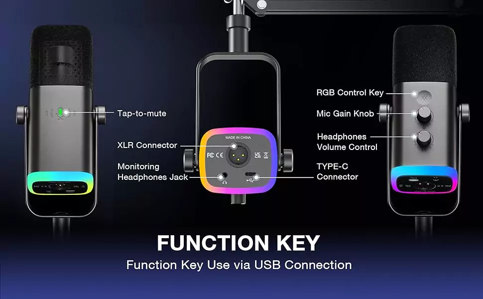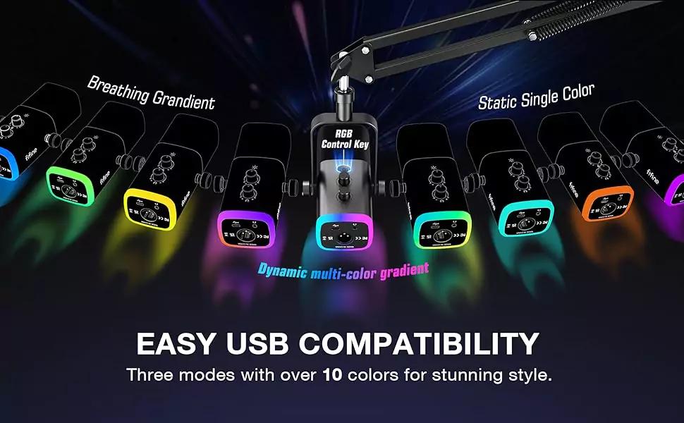 The streaming microphone RGB illuminates your gaming setup with customizable RGB lighting for a visually stunning experience.(RGB is only available for USB connection)