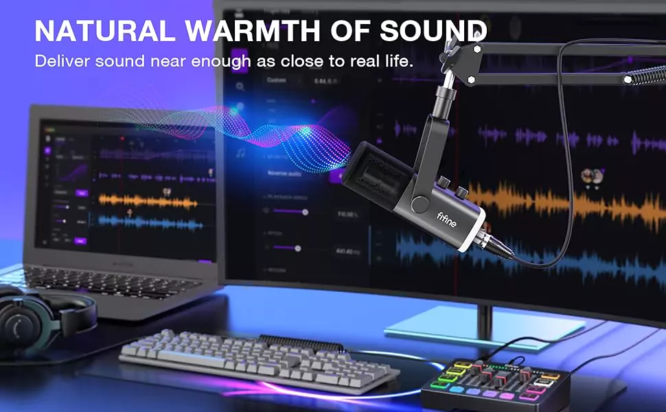 The dynamic microphone is more convenient for working from home or going out for podcasts, and the complete accessories allow for faster recording work.