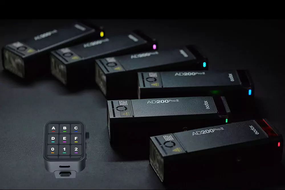 The AD200Pro II is part of Godox’s 2.4 GHz wireless X system with a range of 328′, featuring 16 groups and 32 channels that facilitate the use of multiple lights. Use the optional X3 trigger or the X2, XPro, and XPro II triggers to wirelessly control the flash head. The brand presents what they call “Group Color Indicator”, meaning that each of the 16 groups will display a different color locally on the flash head for easy group identification even from a distance.
