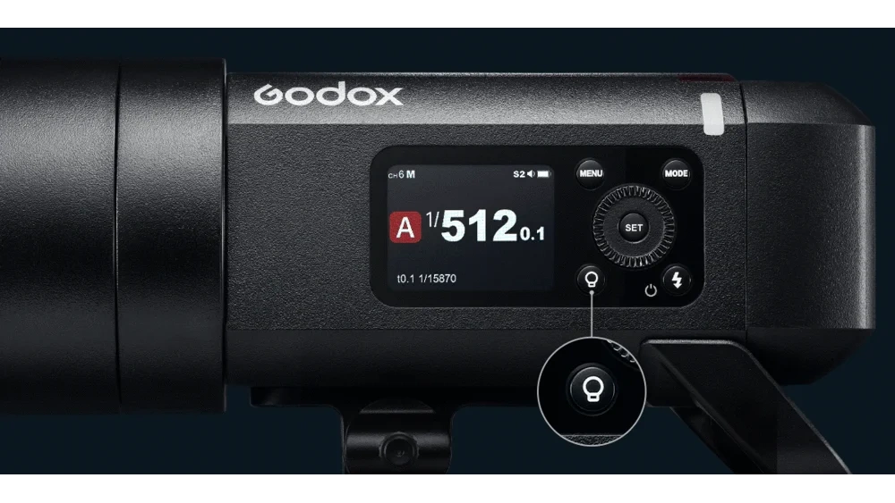 The AD400Pro II’s 30W LED modeling light is adjustable from a wide 2800 to 6000K CCT with variable brightness from 10 to 100%. You can also set the modeling lamp to a PROP mode that allows the CCT and brightness level settings to follow the flash power.