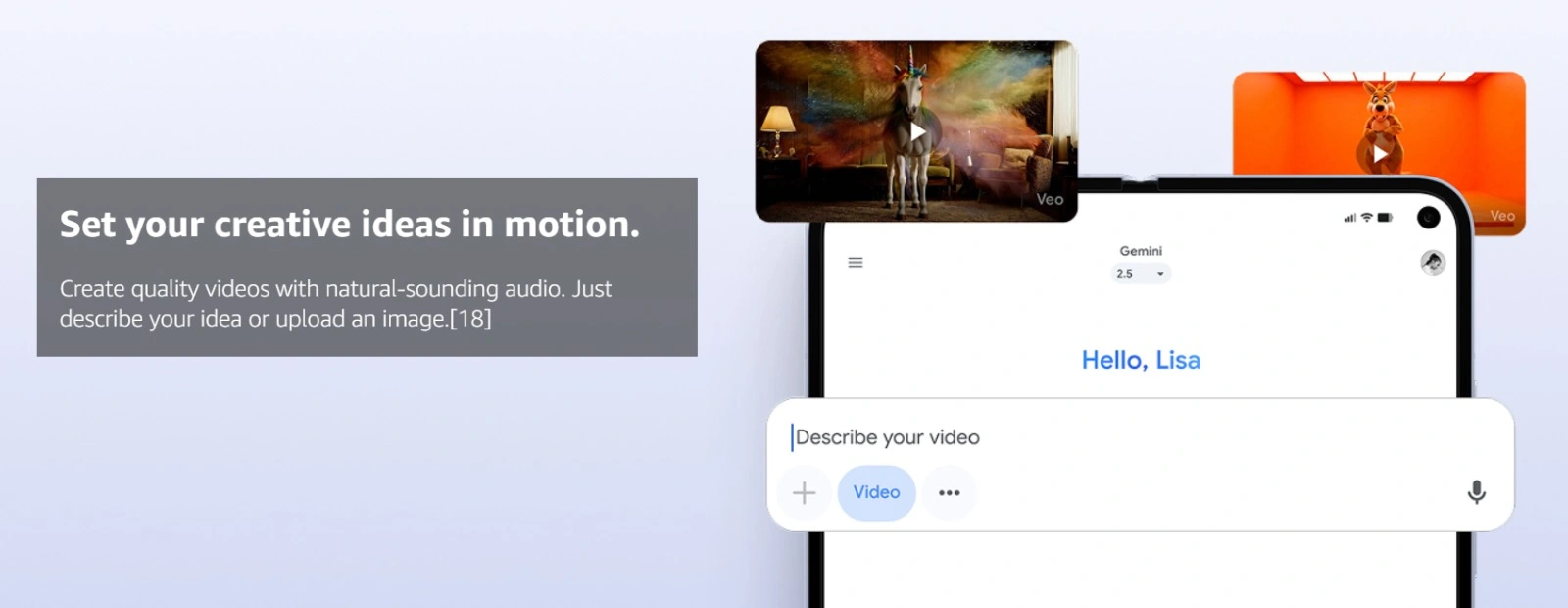 Create a high-quality short video, complete with natural-sounding audio, simply by describing your idea. Or upload an image, explain the scene you want, and see your photo transform with motion and sound.