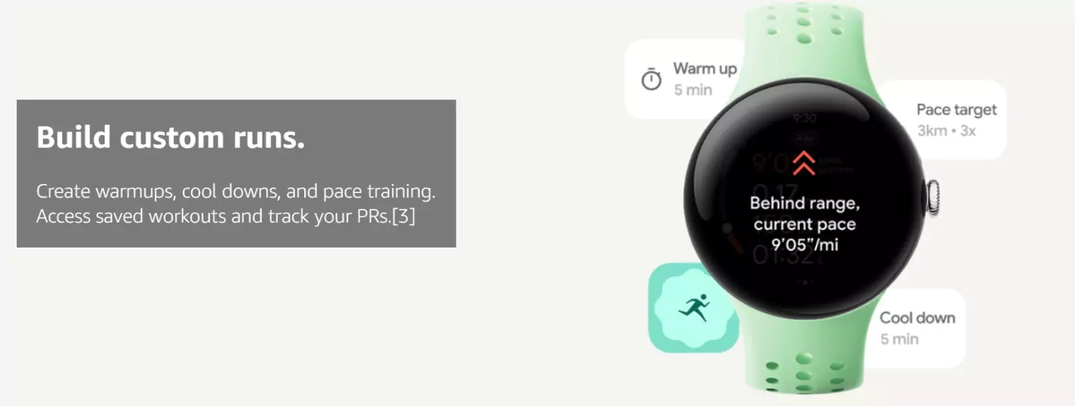 You bring the effort, the Pixel Watch 3 brings the expertise.¹ Build run workouts and get real-time guidance and advanced form tracking