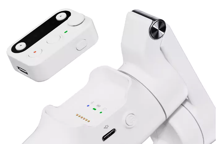 A built-in 1400mAh battery can power the gimbal for up to 13 hours at a time. When using the AI module and fill light at its highest brightness, the battery lasts only four hours. Once depleted, the battery can be recharged in 2.5 hours via USB-C cable.