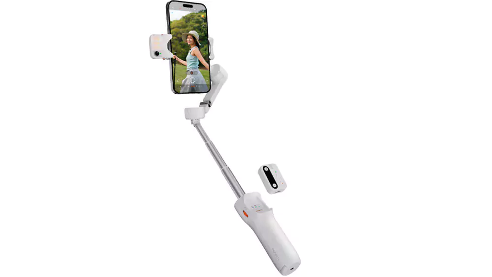 Integrated iSteady 8.0 stabilization technology and 3-axis anti-shake smooth any jarring motions that might impact your footage. The magnetic AI tracker unit secures to the top of the gimbal’s smartphone clamp and works with your phone’s native camera. Face and body movements are precisely tracked thanks to the module’s 16.4′ recognition distance. Gesture control can start/stop filming and switch between portrait and landscape shooting orientations.