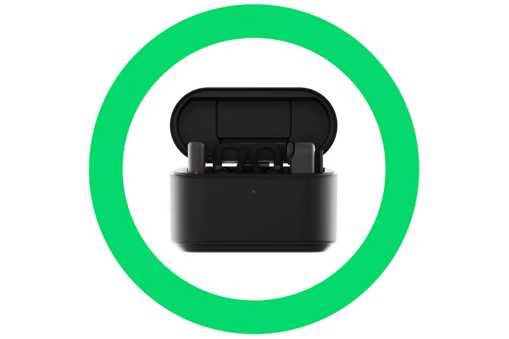 - The charging case is specifically designed to accommodate all of the receiver and transmitter units. Its 1300mAh internal battery can recharge the entire system multiple times for a total battery life of 30 hours.
