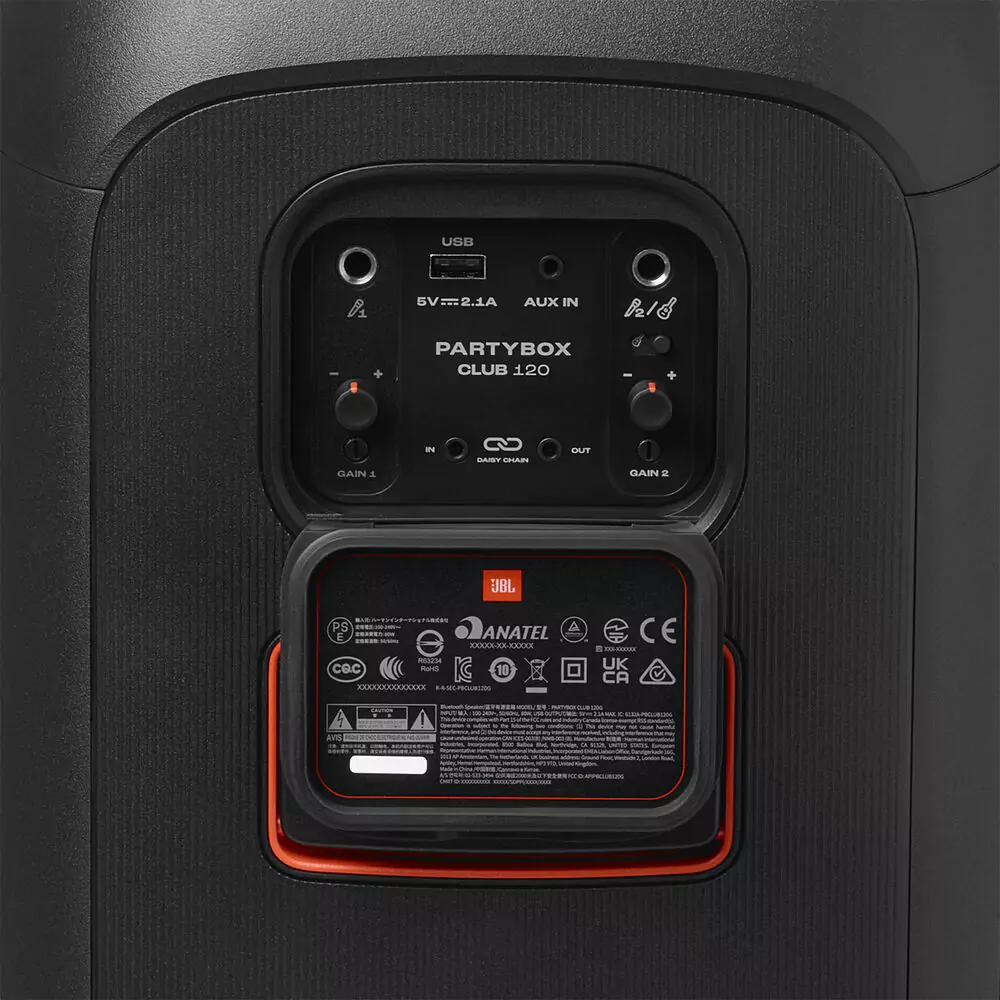 If anyone at your party can sing or play a guitar, the PartyBox Club 120 is ready to support them as they show off their talents. The speaker provides dual mic inputs and guitar inputs for multiple performers.