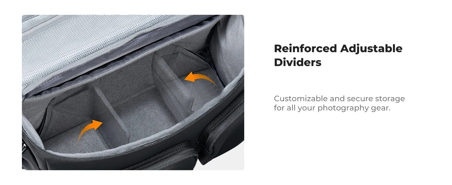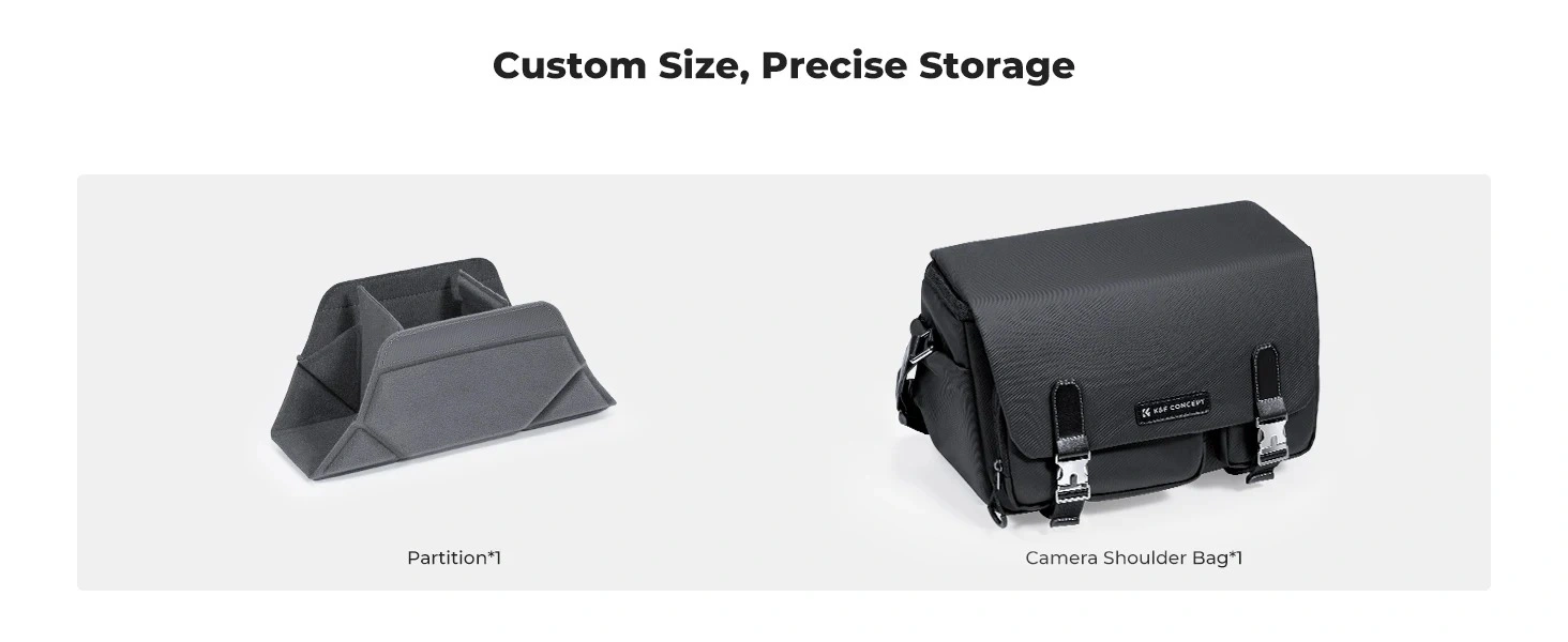 This crossbody camera bag comes with 1 removable padded divider to for personalized storage. keep camera and others separated and protected, also enable you to customize main compartment for different size of camera equipment. After removing inner dividers, it can easily convert it from a dslr camera bag into a stylish everyday shoulder bag.