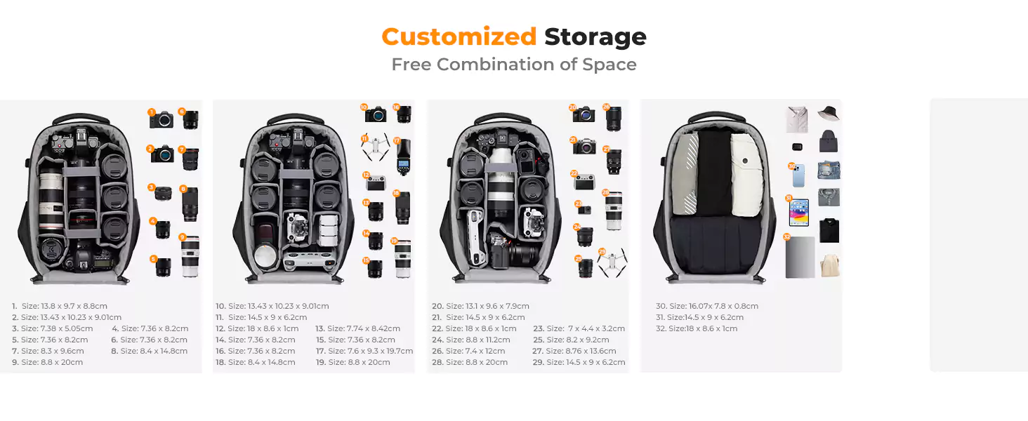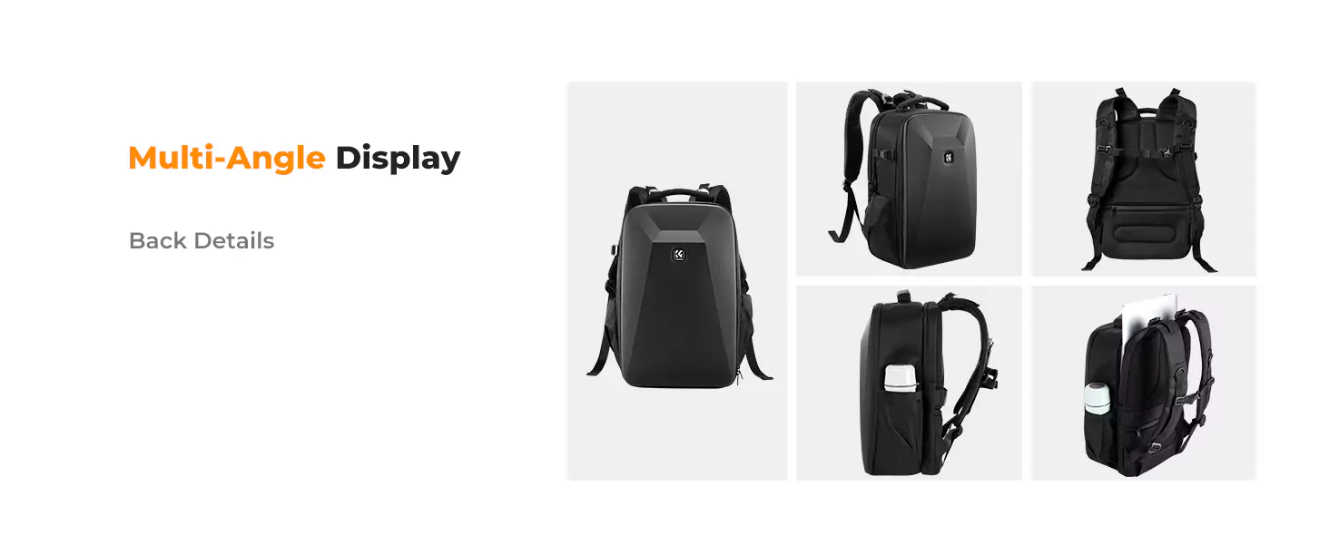 This hard shell camera backpack is made by EVA hard shell case all in one piece, The foam padded layer can provide good buffer and protection to your internal stuff against shock and drops. Comprehensive protection for your camera and drone equipment.