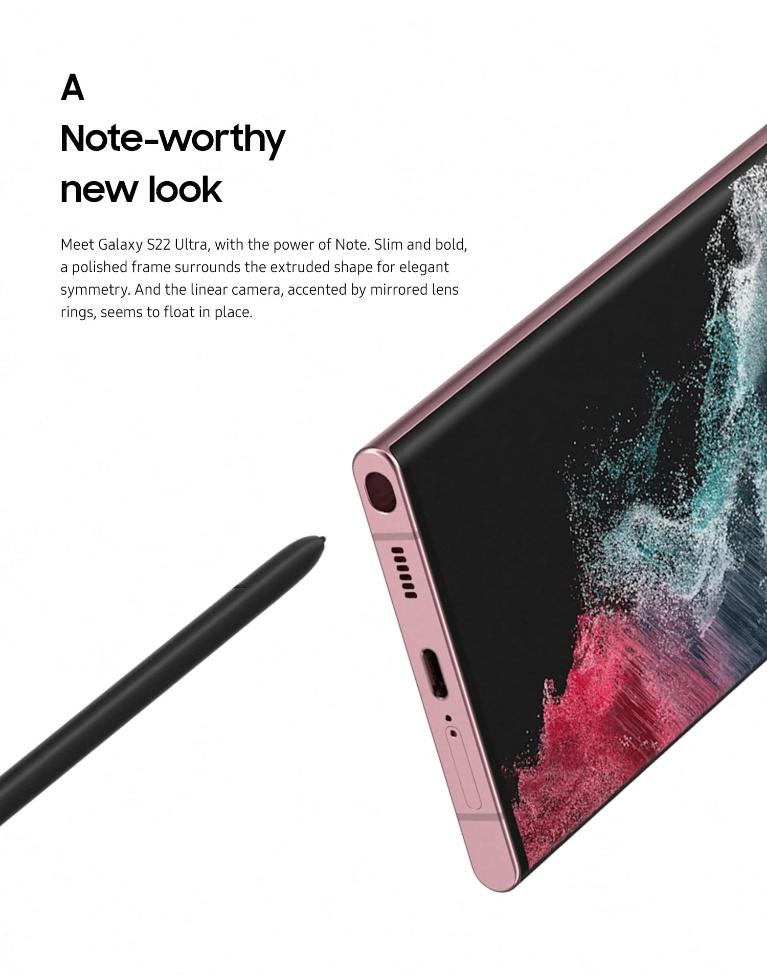 We’ve got you covered. Galaxy Note owners: You asked, we listened. The S Pen is now embedded with Galaxy S22 Ultra.