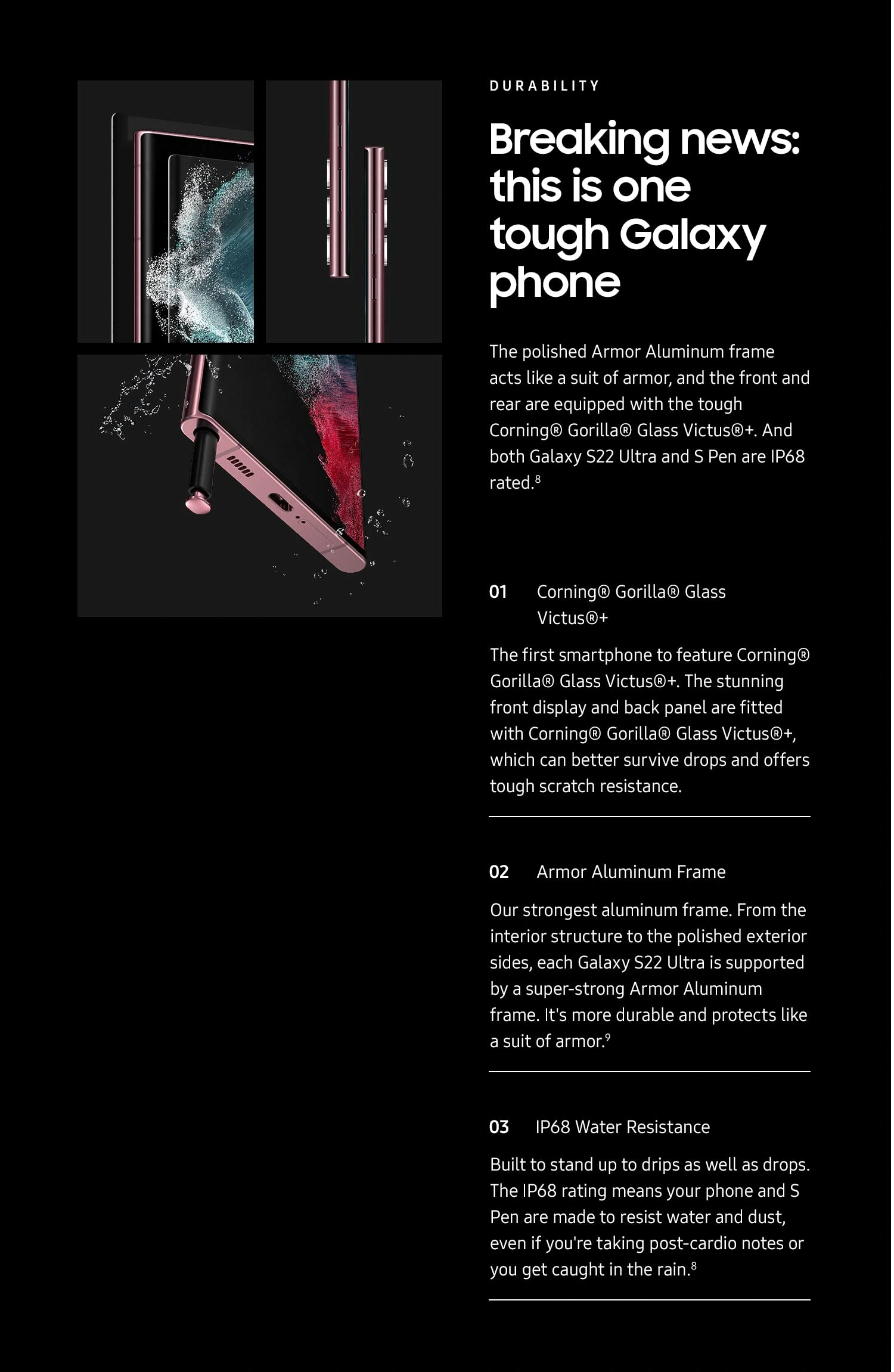 Formidable aluminum frame. The latest Gorilla® Glass. Water resistant phone and S Pen.