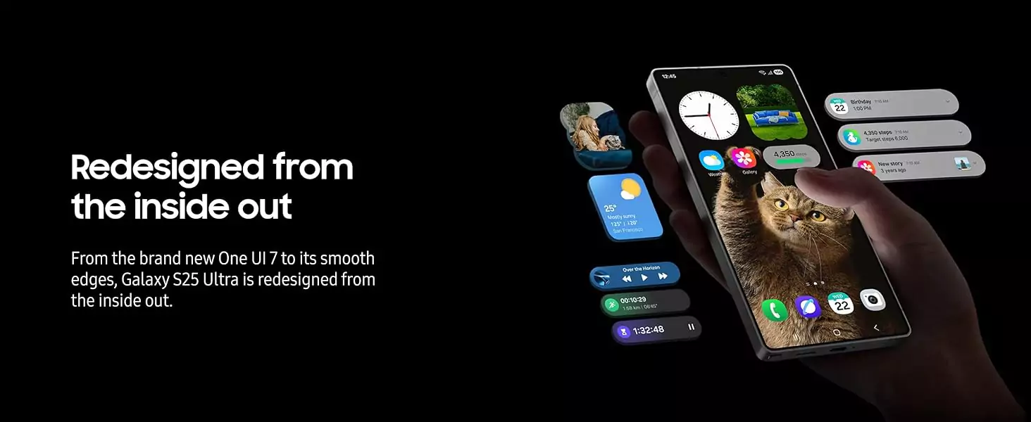 Galaxy S25 Ultra redefines the way you interact with your phone. Its ergonomic design features smoother edges and a comfortable grip for effortless handling, while the redesigned One UI 7 streamlines every task. Whether you’re enjoying long gaming sessions or navigating Galaxy AI tools, Galaxy S25 Ultra feels as good as it performs.