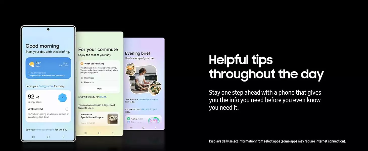 Start your day in the know using Energy Score with Galaxy AI. It’s a daily score based off yesterday’s sleep, activity and heart rate, all collected by your Galaxy Ring or Watch. Then go deeper and discover insights for how to improve it on your Galaxy S25 Ultra device.