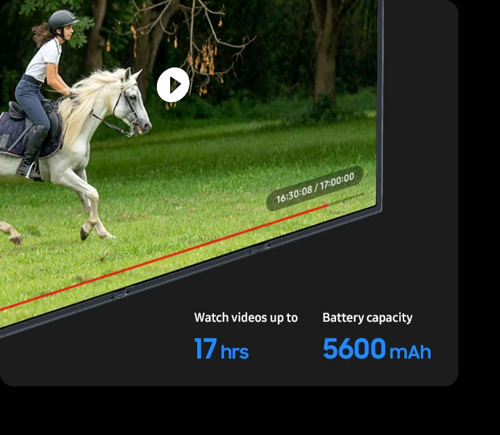 A 5600 mAh battery capacity gives you up to 17 hours of video playback time, boosted by the advanced processor and embedded mDNIe technology to maximise power efficiency. When you do need to recharge, the included 45 W Power Adaptor — a first on Galaxy Foldables — brings you back to full power fast.