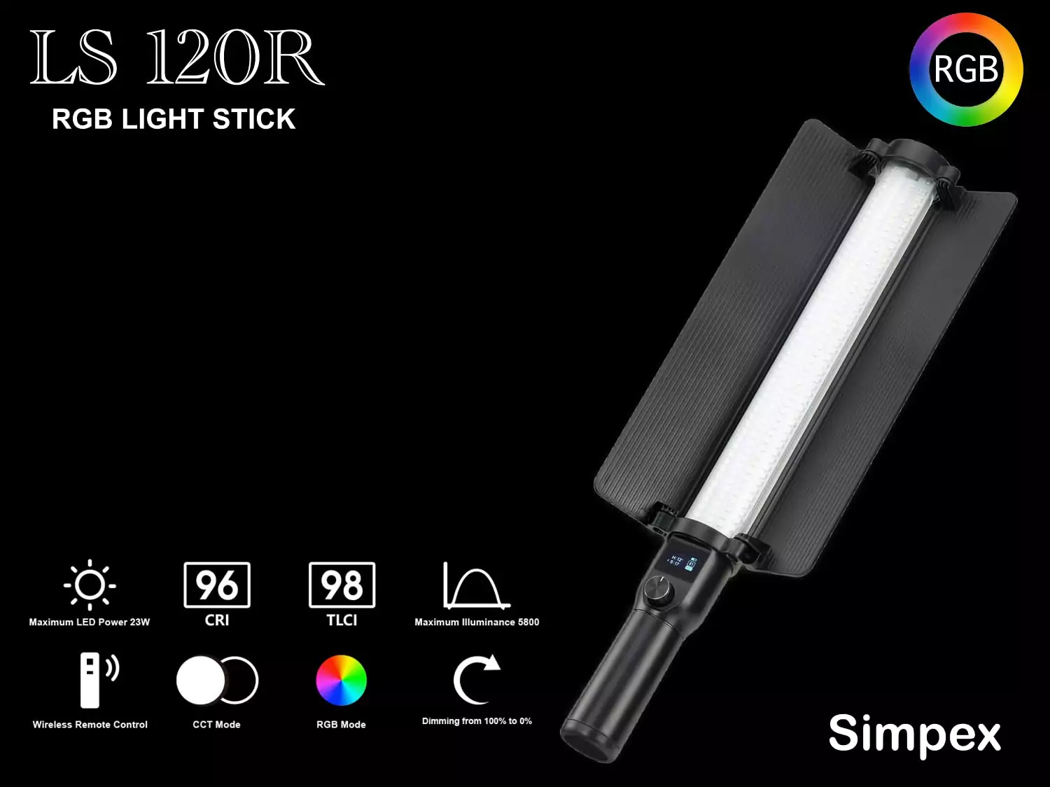 Simpex LS120R RGB Light Stick, Portable Handheld Stick with in built battery and creative music mode for professional filming