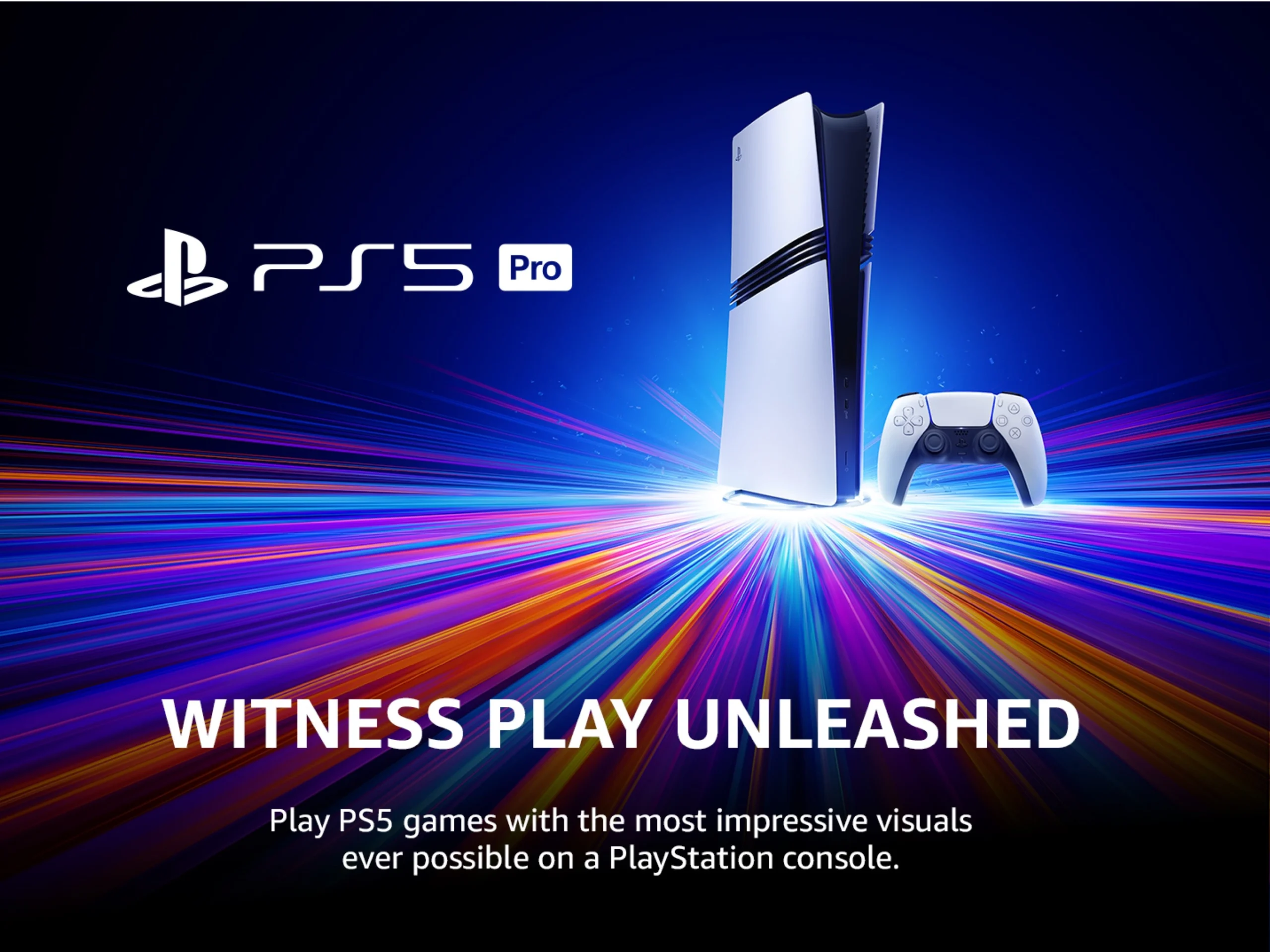 Vertical Stand sold separately. With the PlayStation 5 Pro console, the world’s greatest game creators can enhance their games with incredible features like advanced ray tracing, super sharp image clarity for your 4K TV, and high frame rate gameplay.*