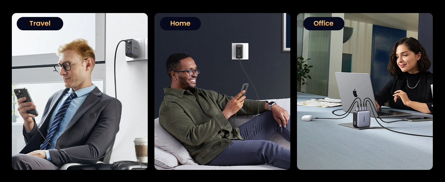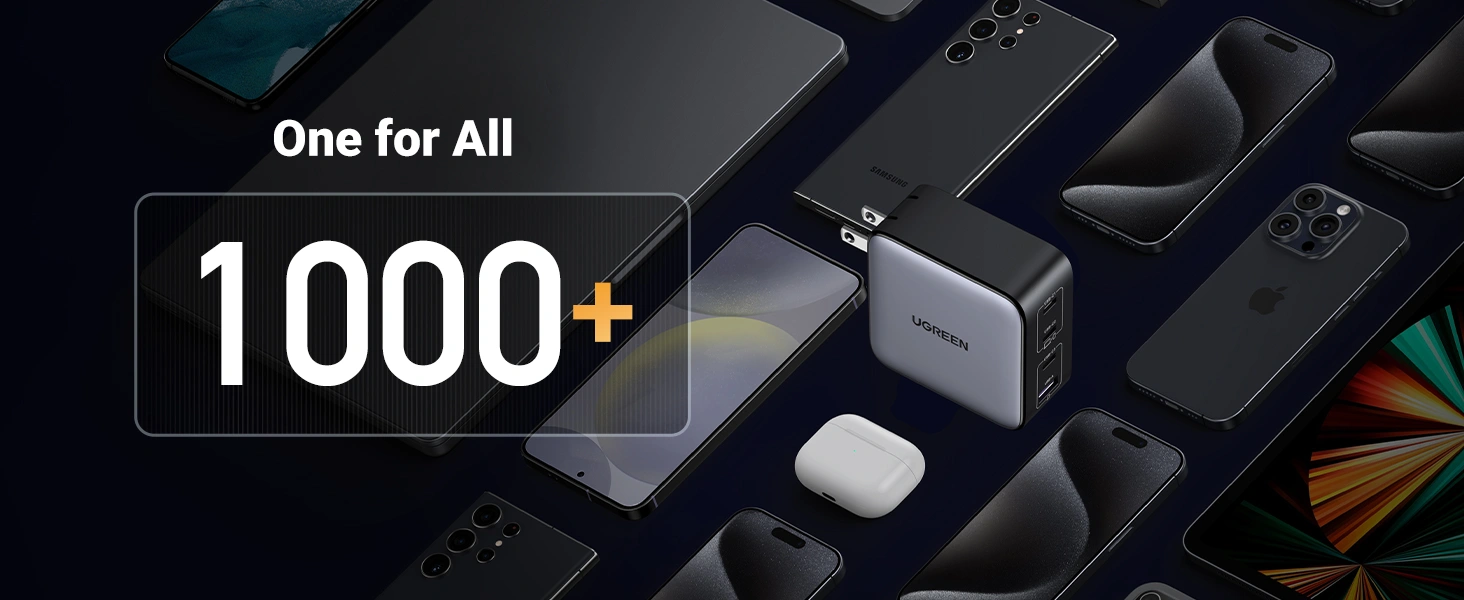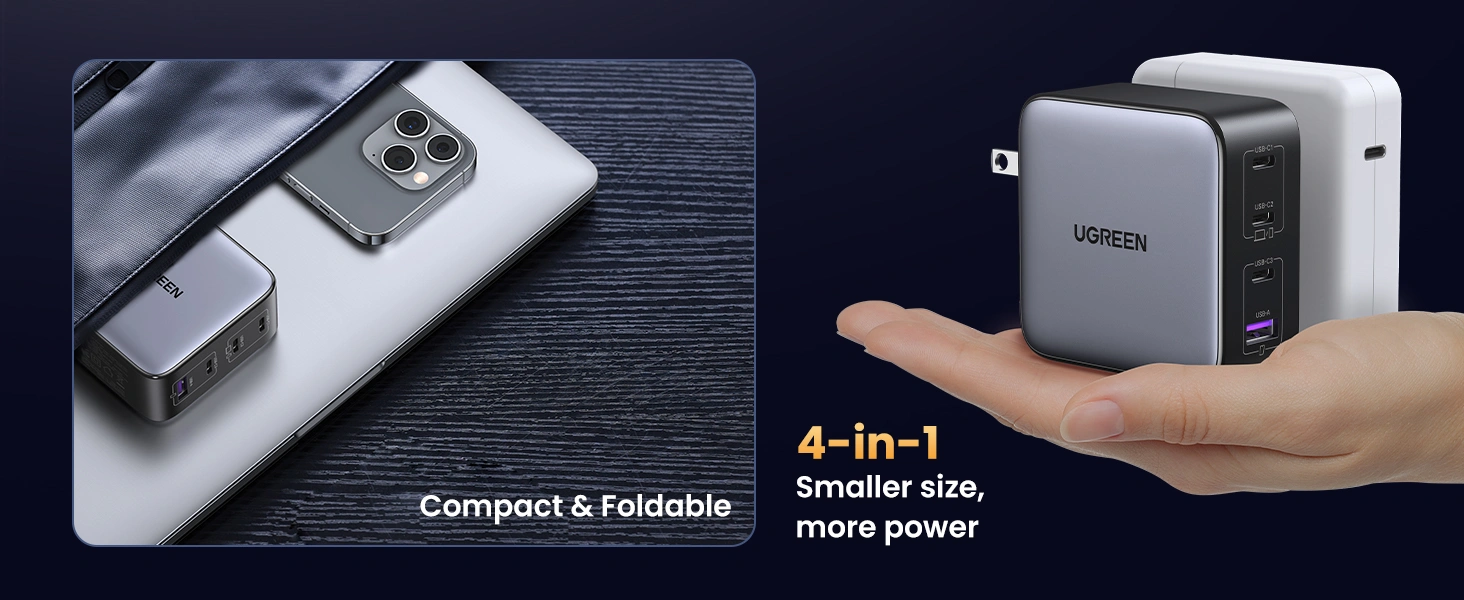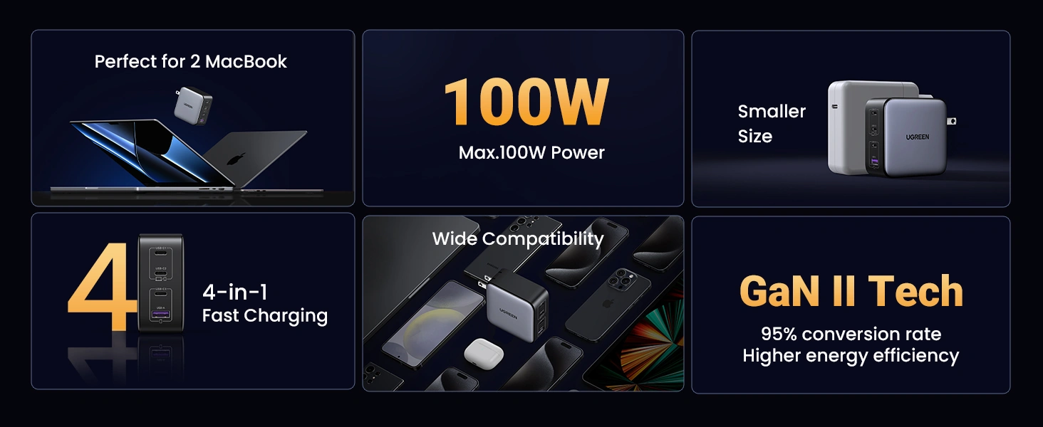 Charge all of your devices from a single outlet when you use the 100W GaN 4-Port USB Wall Charger from UGREEN. When plugged in, this wall charger gives you the ability to charge up to four devices at the same time from its one USB-A and three USB-C ports. Up to 100W of power is available to recharge your smartphones, tablets, laptops, gaming devices, and more. Support for PD, QC, PPS, SCP, and FCP protocols allows for fast charging, and integrated protections help to keep those devices safe while connected.