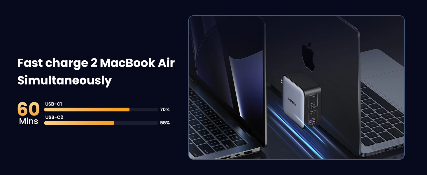 - C1+C2: Up to 65W+30W (PD)