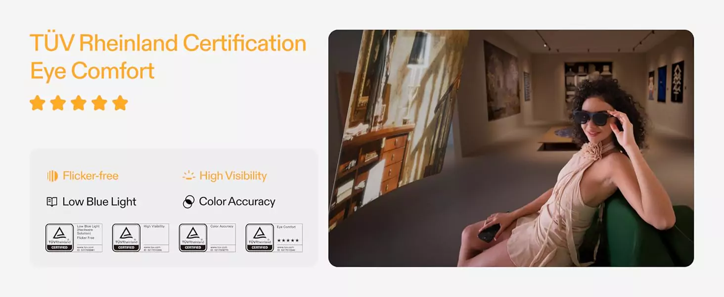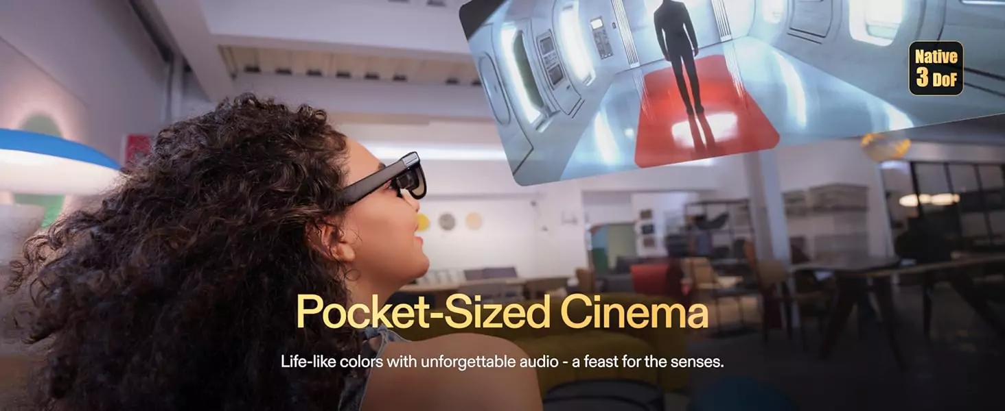 Even more to explore with the all new 32:9 Ultrawide Mode. Connect directly to your PC/Mac for instant access to an ultrawide virtual experience and unmatched multi-task experience in 3 DoF, equivalent to a 265″ screen (equivalent to a projection from a 4-meter distance).