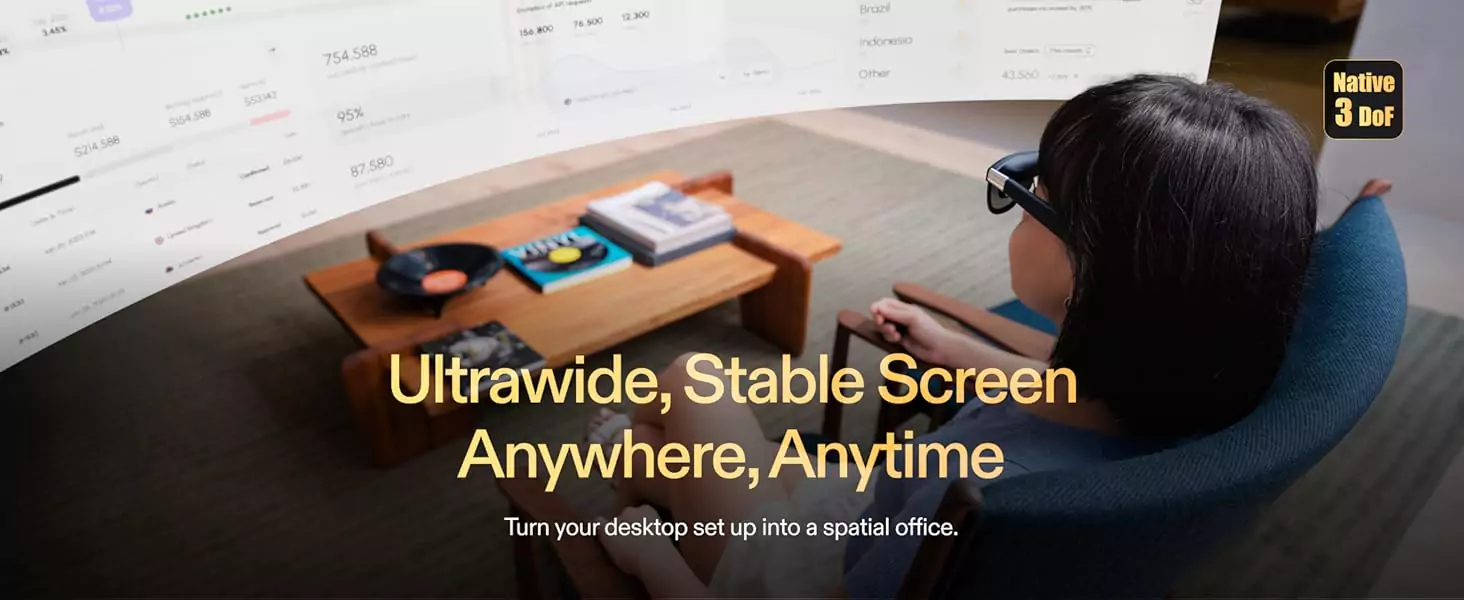 With up to 120 Hz refresh rates and ultra-low latency, connecting to any gaming device gives you a smooth and immersive gaming experience. Anchor your screen anywhere in space with XREAL’s most stable visuals ever with 3 DoF.