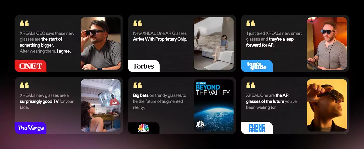 Step into the new era of wearable display Ushering in the next generation of user interactions that merge the physical and digital worlds. XREAL’s mission is to make AR accessible for everyone with it’s line of AR glasses. XREAL self developed spatial computing chip, the X1 Chip pushes performance to the limit in a compact design and unlock native 3 DoF in your glasses, delivering a major upgrade for the XREAL One. What’s in the box XREAL One AR Glasses Protective Case Detachable USB-C Cable Nose Pads (Small/Medium/Large) Cleaning Cloth