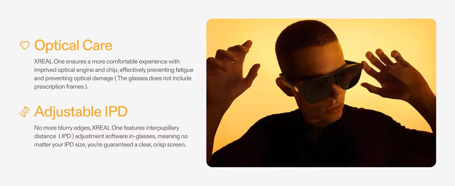 Liquid-smooth visuals with every wear thanks to our improved stabilization algorithms. Precision distortion control delivered by the X1 Chip, for a perfect screen in any situation. XREAL One features interpupillary distance (IPD) adjustment software in-glasses, meaning no matter your IPD size, you’re guaranteed a clear, crisp screen.